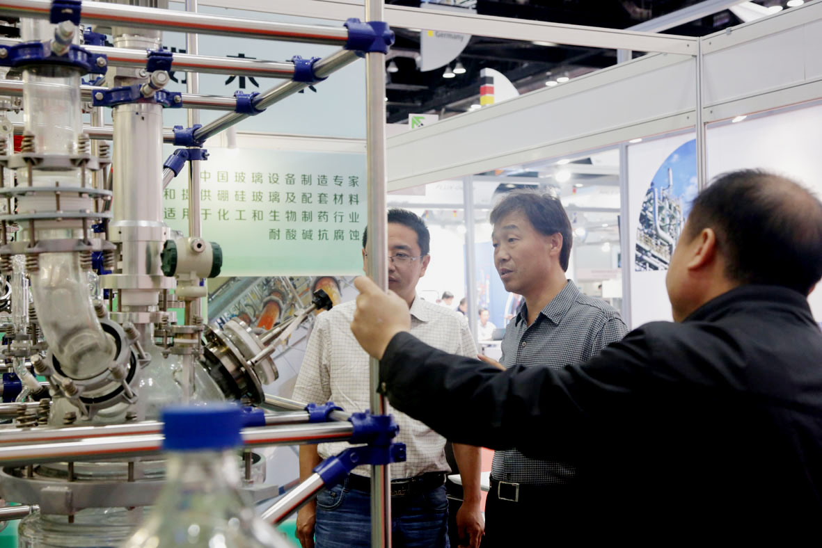 博美華科公司展出了世界領(lǐng)先的成套化工設(shè)備,其中新研制的50L雙層、20L三層兩款玻璃反應(yīng)釜,成為展會一大亮點(diǎn),備受客戶關(guān)注。博美北京公司展出了燒杯、球瓶等實驗室玻璃器皿。